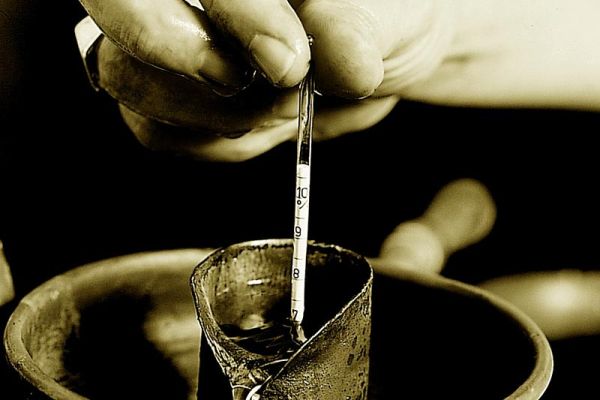 The distiller is always measuring the percentage of alcohol during the day of distillation in order to select the “heart” of the brandy.